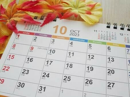 9日(スポーツの日)は月曜ですが祝日のため、お休みとなります。